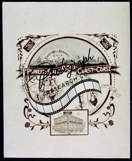 The pioneer sale known from Coast to Coast,1890s,cityscape with wagon train