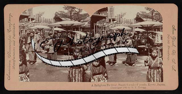 A religious festival,booth for sale of goods,Kyoto,Japan