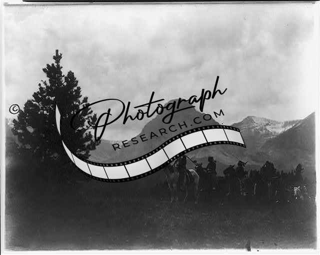 Pass Finders,Indians,Horseback,Snow covered mountains