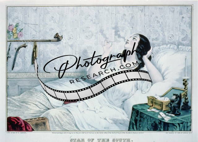 Star of the south,c1847,Currier & Ives Photo,woman,white dress,candle,table
