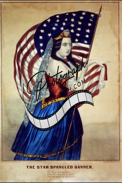 The star spangled banner,United States Flag,Woman,1856-1907,Currier & Ives Photo
