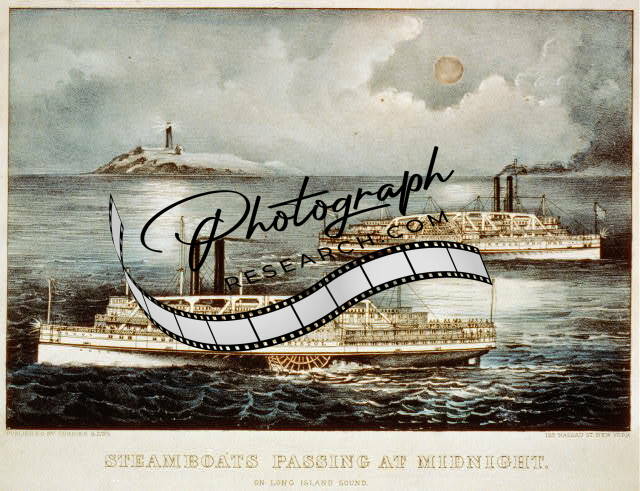 Steamboats passing at midnight: on Long Island,1856-1907,Currier & Ives Photo