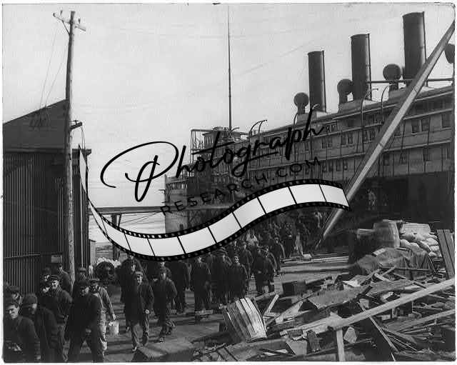 Workmen leaving ship construction - The Seeandbee,Steamer,USS Wolverine