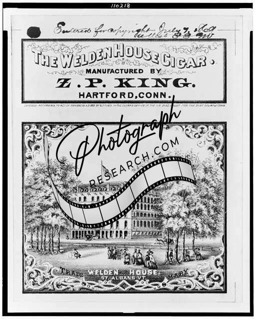 Label,The Welden House cigar,Z.P. King,Hartford,CN 1869