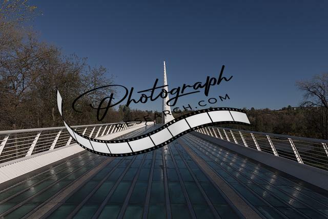 Title: The Sundial Bridge, which crosses the Sacramento River at Turtle Bay in the heart of Redding, California