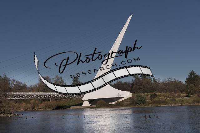 Title: The Sundial Bridge, which crosses the Sacramento River at Turtle Bay in the heart of Redding, California