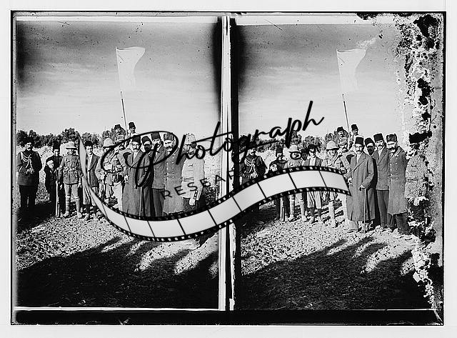 Title: The surrender of Jerusalem to the British, December 9th, 1917. General Shea and staff, who was authorized to accept the surrender of Jerusalem.