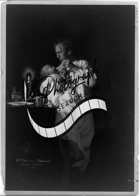 20th Century Madonna,Man,in nightshirt,feeding baby by candlelight,c1901