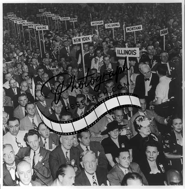 National political convention,men,women,signs,1952?
