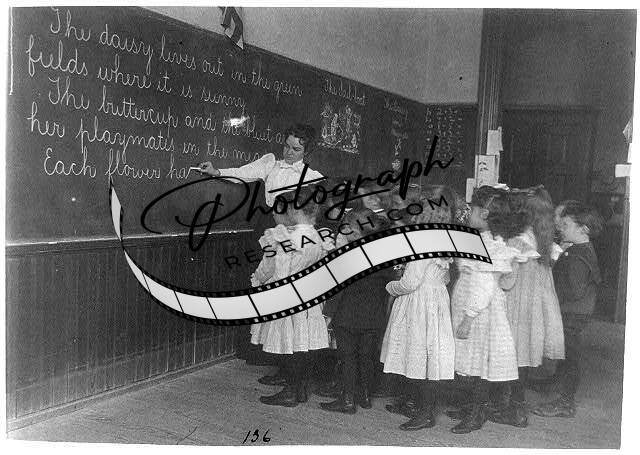 Elementary school children,watching teacher write,blackboard,Washington DC,1899