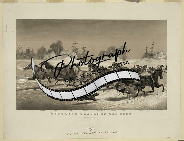 'Trotting cracks' on the snow,sleigh,horses,people,c1858,Currier & Ives photo