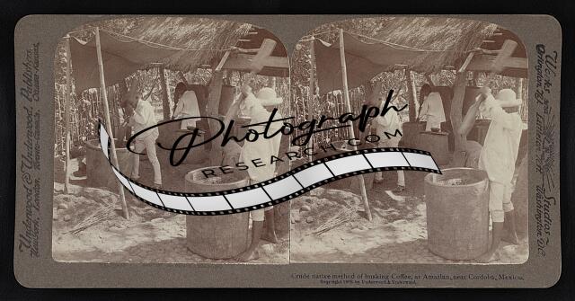 Crude native method of husking coffee, at Amatlan, near Cordoba, Mexico