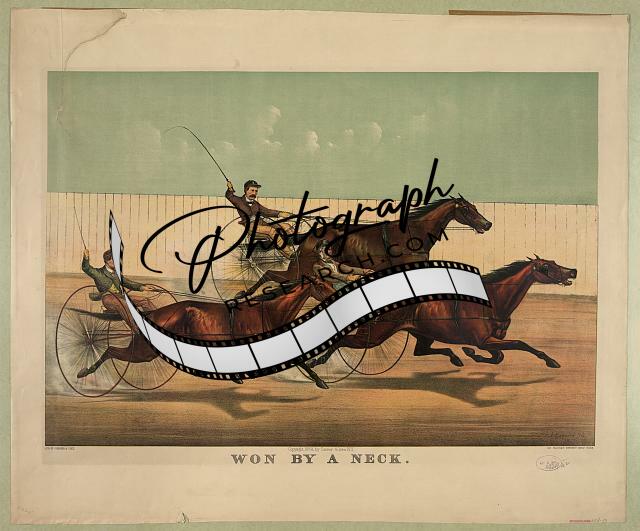 Won by a neck,Harness Racing,Currier & Ives Photo,John Cameron,c1889,horses