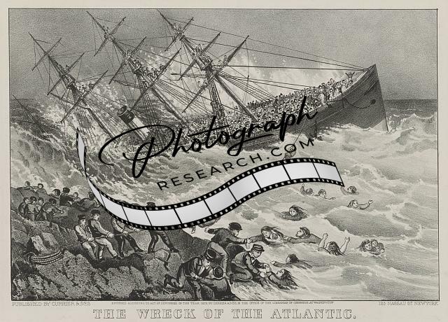 The wreck of the Atlantic,Ship,people,waves,shore,c1873,Currier & Ives Photo