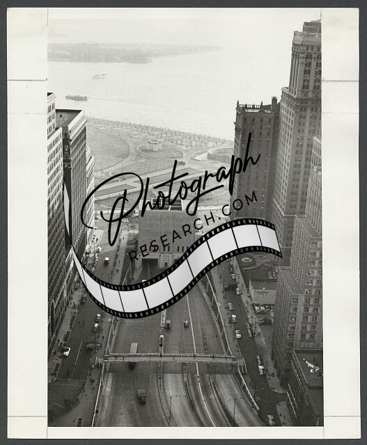 [[Aerial view of the Brooklyn-Battery Tunnel entrance and Battery Park, Manhattan