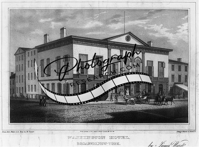 Washington hotel. Broadway,New York,N.Y.,horse drawn carriages,July c1833