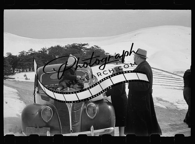 Cedars. Photographic party stops for a cold snowy lunch,Lebanon,March 1946,3