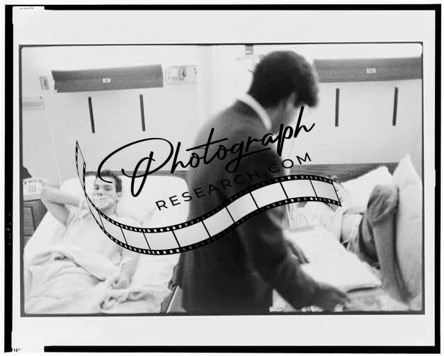 Dr. Jeffrey Wallach visiting two of his patients at Cabrini Medical Center in New York--The patient on the left is HIV-, the patient on the right has AIDS and had just received a Hickman catheter, 1991