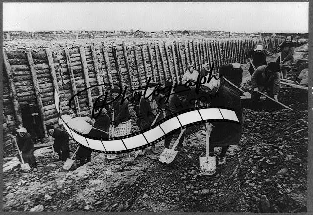 Leningrad inhabitants,women,Petrov,munition worker,shovels,anti-tank ditch,1941