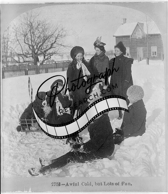 Awful Cold but lots of Fun,c1900,Children,Dog,Snow,Winter,Fun,Play,House
