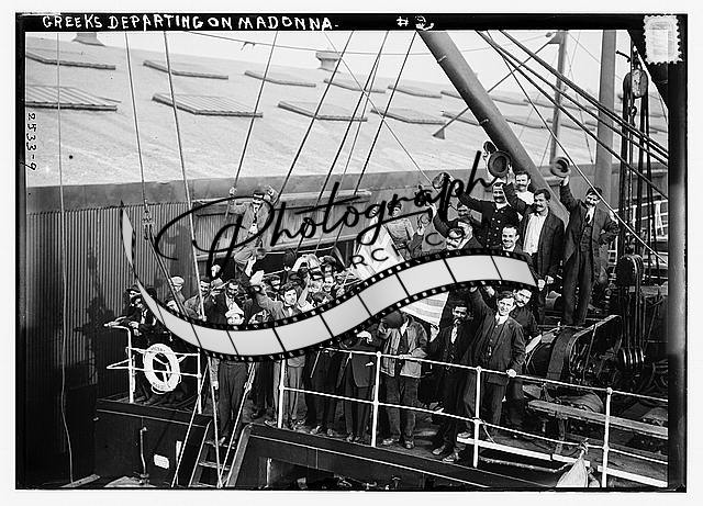 Greeks departing on MADONNA,people,flag,Ship,October 1912,Greek Immigrants