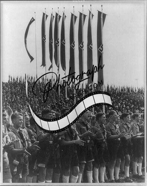 Hitler Youth clapping and shouting at Nazi party rally in Nuremberg