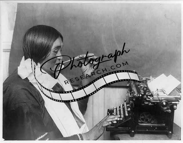Mrs Many Horse typing,Indian Agent,Glacier National Park Reservation,chewing gum