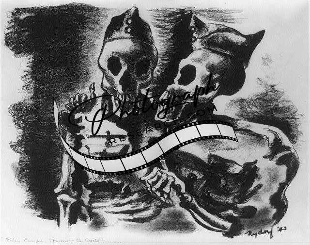 Today Europe; tomorrow, the World, 2 skeletons of Nazi soldiers talking