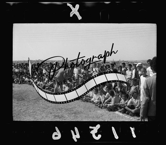 Title: Third annual sports meeting of the government schools of the Jerusalem sub-district, on Government Arab College ground (near Government House). The sack race