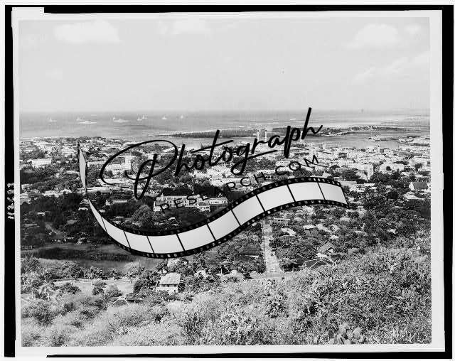 Honolulu business district and harbor, 1930's,HI