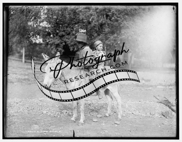 Riding double,children,animals,donkeys,pack animals,Detroit Publishing Co,c1901