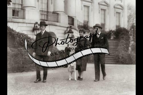 President Calvin Coolidge,Grace Coolidge,their son,John,walking dog,White House