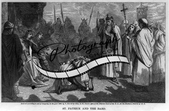 St Patrick,bard,Saint,crosses,religion,praying,priests,J Hoey,c1868