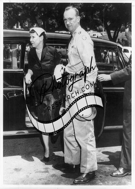 MrsMamie Doud Eisenhower,son,Major John,hospital,serious expression,face,c1955