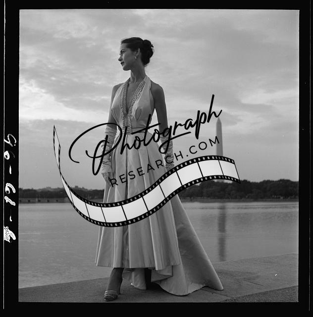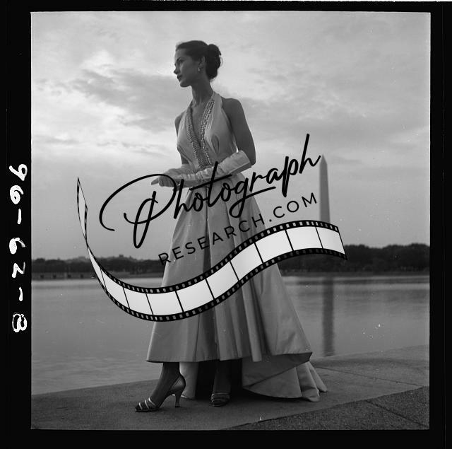 Fashion model,evening gown,Tidal Basin,T Frissell,Washington Monument,1949 1