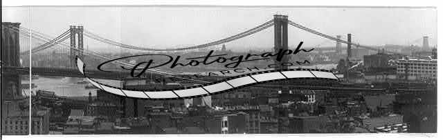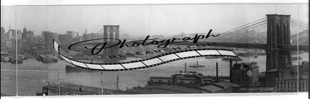 New York skyline,NY,c1908,boats,harbor,buildings,skyscrapers,Brooklyn Bridge