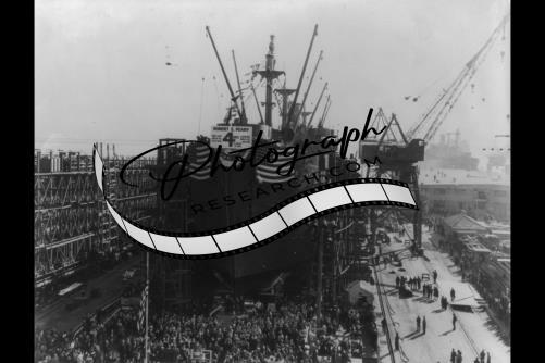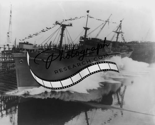 Liberty Ship,ABRAHAM LINCOLN entering water,being launched,c1942,WWII,World War
