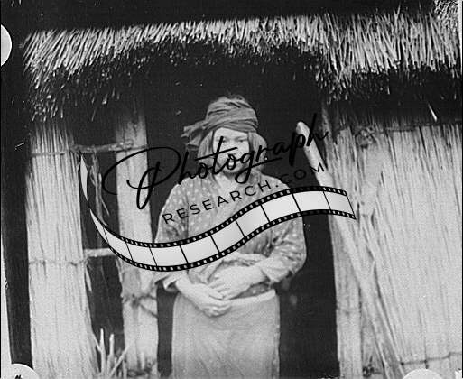 Ainu woman,doorway,hut,villages,thatched roofs,structures,Arnold Genthe,1908