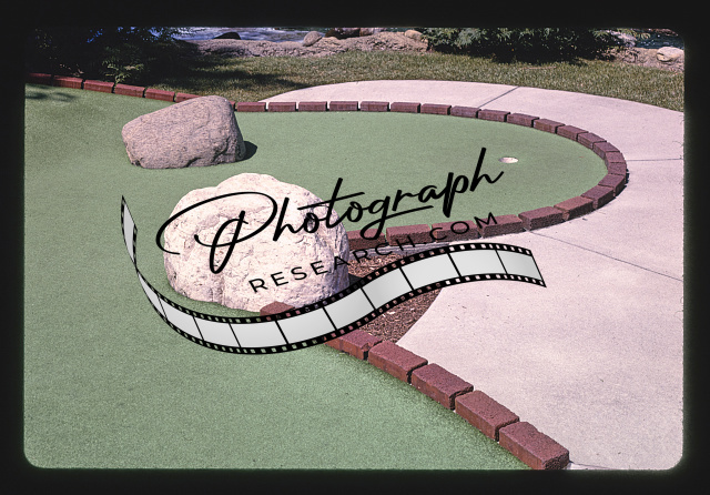 Title: Circular hole with three boulders, Pirate's Cove Adventure Golf, Queensbury, New York