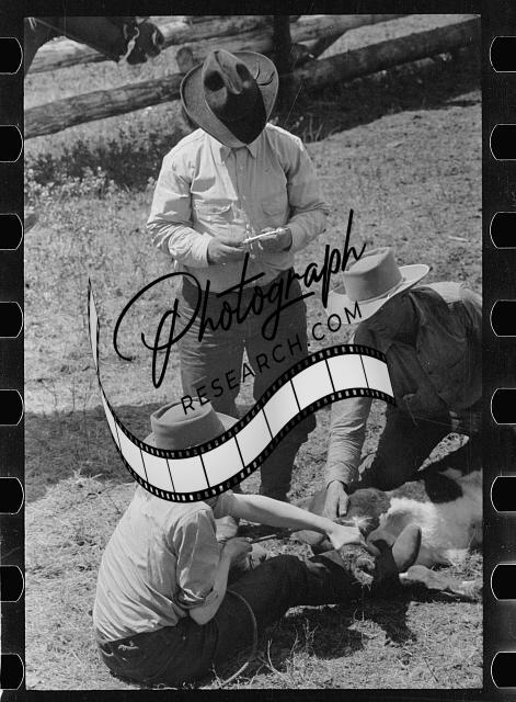 Branding calf,Quarter Circle U Ranch roundup,Montana,MT,Arthur Rothstein,1939,6