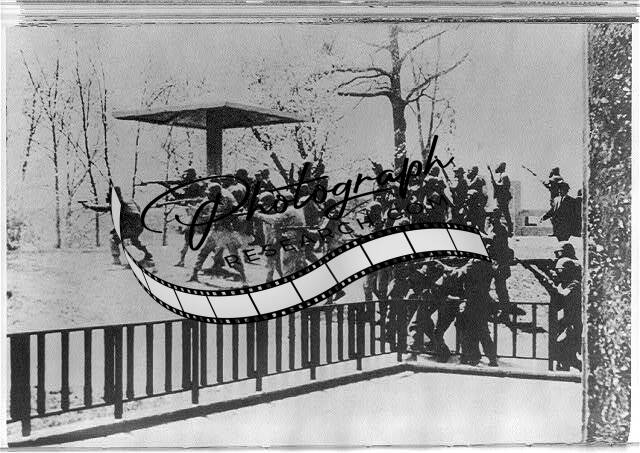 Kent State Univ. riot, May 4, 1970: Ohio National Guardsmen commence firing into student demonstrators. Photo by John A. Darnell