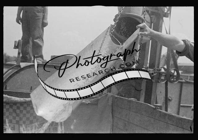 General caption for this series of images: The thresher is generally owned by the engineer who may own a half dozen threshers. The crew is recruited from neighboring farms and from neighboring towns. Often are mechanics, store clerks, etc.