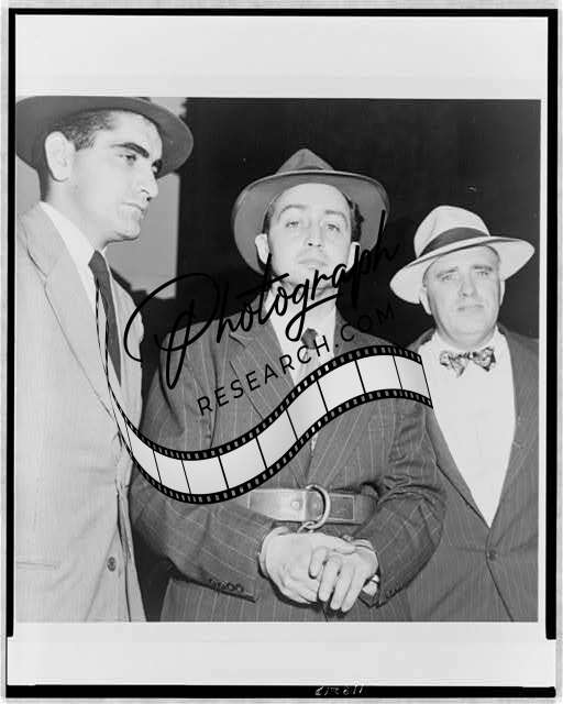 Harry Gold,handcuffed,flanked by Thomas Hasson,John J. Gericke,1950