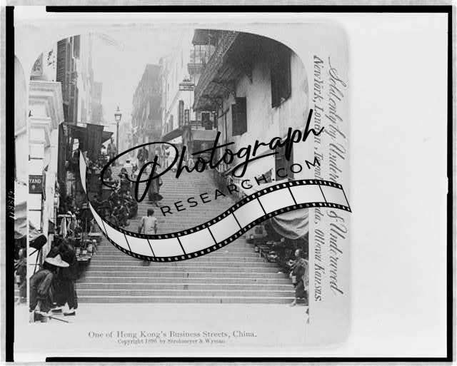 One of Hong Kong's Business Streets,China,c1896,Stairs,Pedestrians,Buildings