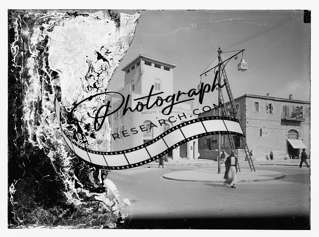 Barclay's from across square-ladder to high lamppost in center of square,c1920