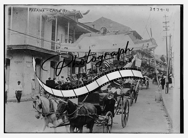 Panama -- Carnival,horse drawn carriage,flags,people,Bain News Service