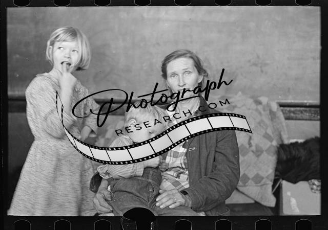 Mother,two children,flood refugees in the schoolhouse at East Prairie,Missouri,1