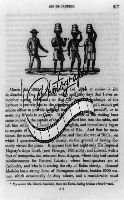 Illustration,man,sword,convicts,chains carrying buckets,water,heads,text,1824