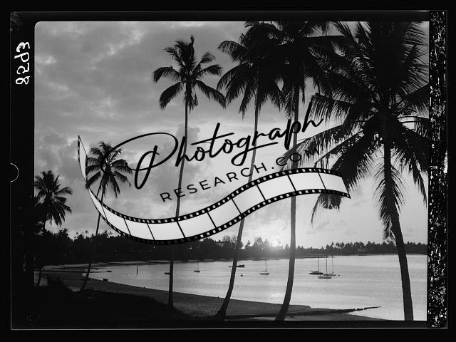 Sunrise,palm grove,across the bay,Dar es Salem,Tanganyika,Dar es Salaam,Tanzania