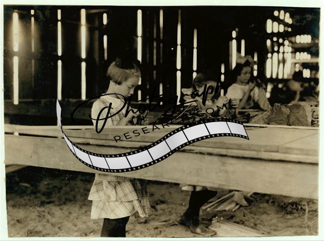 Title: Interior of tobacco shed, Hawthorn Farm. Girls in foreground are 8, 9, and 10 years old. The 10 yr. old makes 50 cents a -day. 12 workers on this farm are 8 to 14 years old, and about 15 are over 15 years. Location: Hazardville, Connecticut / L.W. Hine.